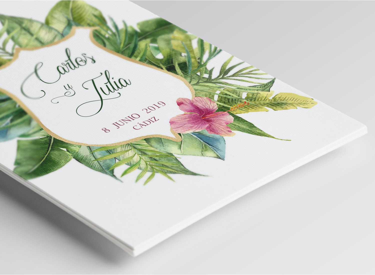 Invitaciones impresas en cartulina de 315 grs. Tamaño A-5